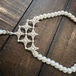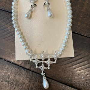 Pearl and rhinestone styled Fashion Jewelry for brides. Collar necklace and clip on earring set.