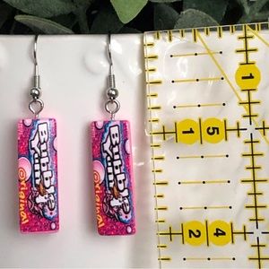 These fun, mini food, Bubble Yum bubble gum earrings are whimsical, oversized statement pieces, which are perfect for summertime. The little candy packages will add a bit of novelty fun to any spring or summer outfit.