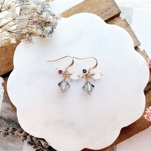 ♥ cute and delicate 14k gold filled earrings with Swarovski crystal butterfly in crystal AB (6mm), Swarovski bicone crystal in blue shade crystal (8mm), and Swarovski bicone crystals in crystal moonlight and amethyst (3mm)