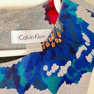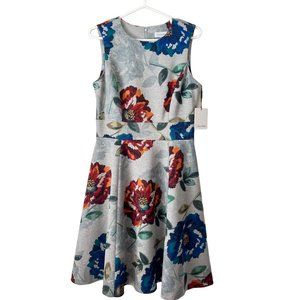 New! CALVIN KLEIN Brocade Floral Fit & Flare Grey Dress, Size 4