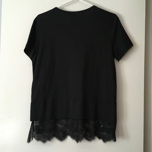 New CARVEN Paris Black Cotton Lace Trim Tee M/L