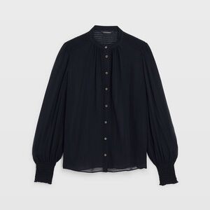 Made from 100% viscose. Relaxed fit with front button placket. Band collar; long blouson sleeves; smocked cuffs and back shoulder yoke. Machine wash.