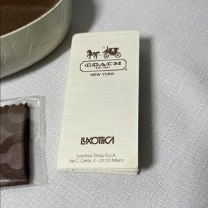Sophisticated Coach glasses case in cream and brown. Offers stylish protection for your eyewear.