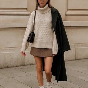 Wrap yourself in cozy elegance with this beautiful, soft knit cowl turtleneck sweater featuring a chic cable-knit pattern in a versatile neutral shade. Perfect for effortless layering or making a standalone statement, this sweater adds a touch of sophistication and comfort to any autumn or winter wardrobe.