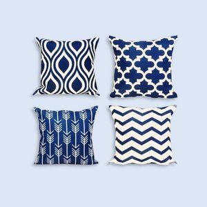New Canvas Blue and Beige Pattern Pillow Covers pk of 4 ( 17×17")
