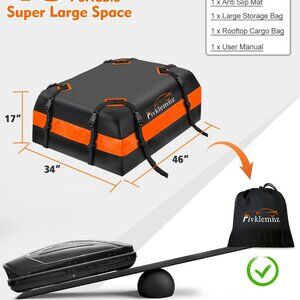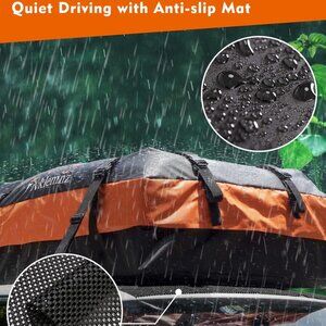FIVKLEMNZ Car Roof Bag Cargo Carrier, 15 Cubic Feet Waterproof Rooftop Cargo Carrier with Anti-Slip Mat + 8 Reinforced Straps + 4 Door Hooks Suitable for All Vehicle with/Without Rack