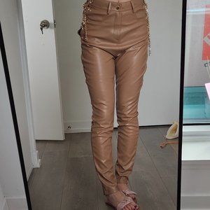 NEW unused. Light beige super soft faux leather pants with side chain details.