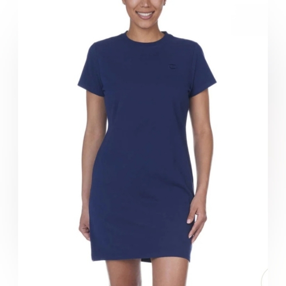 ❤️ New! Champion T-Shirt Dress Blue Women's Cotton Blend Short Sleeve