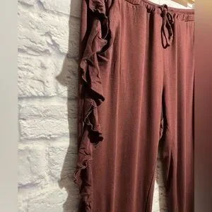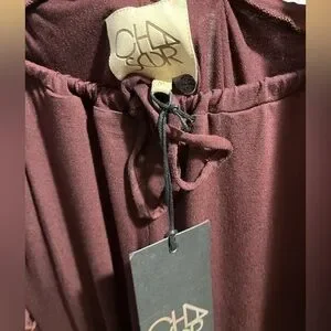 Never worn, tag still attached, no material tag so material and washing instructions are not available. Lightweight material, ruffle sides, cinch hem, drawstring waist, burgundy colour. Make me an offer!