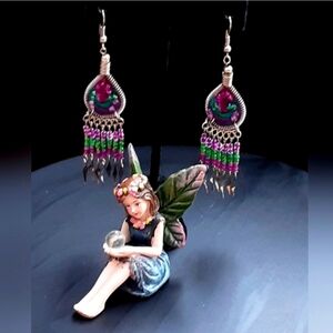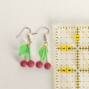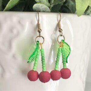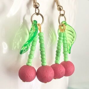 New Cherry Dangling Drop Earrings Hand Beaded Handmade Summer Fun Fruit Unique