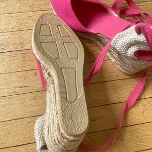 A summer staple. New vibrant pink Espadrille wedges bought at Gravity Pope comfortable wedge heel with classic jute-wrapped heel. Lightweight and breathable. Versatile: dress up or down for ant summer outing. Made in Spain. Size 40