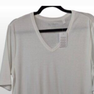 New Chico's Faye Elbow Classic Basic Knit V Neck Tee Optic White Size XL 3