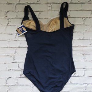 Check out this women's navy blue nautical style bathing suit by Christina. It has a white and gold trim along the top of the bathing suit and is a Tummy Minimizer/Tummy Tamer. It is a women's size 20W40. I've included some measurements to ensure a good fit.