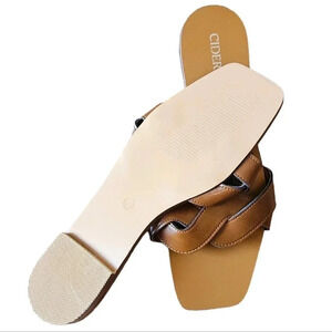 New Cider Santorini Summer Vacation Single Band Vegan Leather Slippers Brown 41.