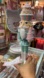 Charming nutcracker figurine in teal, pink, and cream. Perfect for holiday decor.