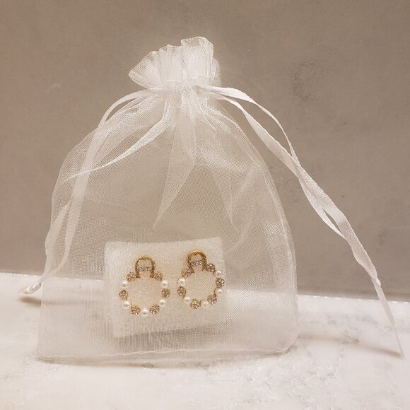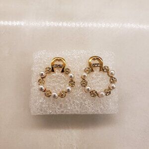 New Costumer Jewelry Crystal and Pearl Hoop Stud Earrings