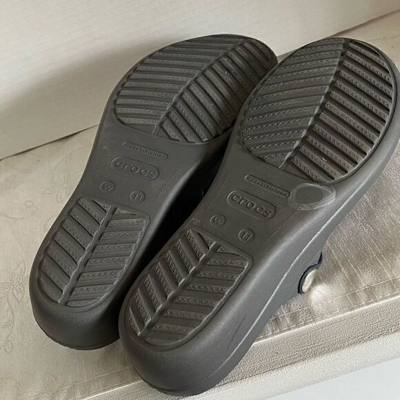 New Crocs Sanrah Circle Black Wedge Thong Sandal Women's Sz 11
