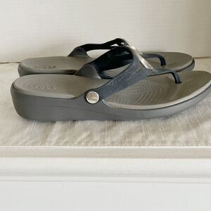 New Crocs Sanrah Circle Wedge Sandal Thong Women's Sz 11
