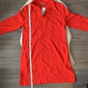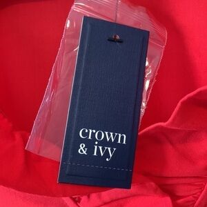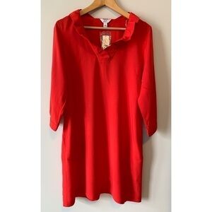 New! Crown & Ivy Red Ruffle Neck Shift Dress Size Small