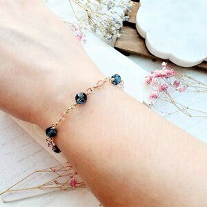 ♥ cute and delicate 14k gold-filled bracelet with Swarovski round crystals in vintage rose (4mm) and montana (6mm), star toggle closure and beautiful 14k gold-filled wire wrapping