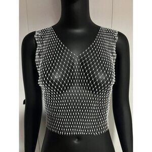New Crystal Studded Silver Fishnet Tank Top