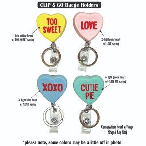 New Custom Handmade "CLIP & GO" Resin Art Badge Holders (Conversation Hearts)
