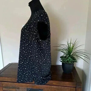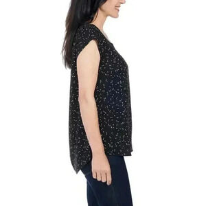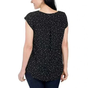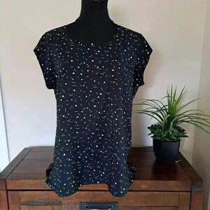 New! Dalia Black and White Printed Blouse Medium Flowy Hearts Short Sleeve Top