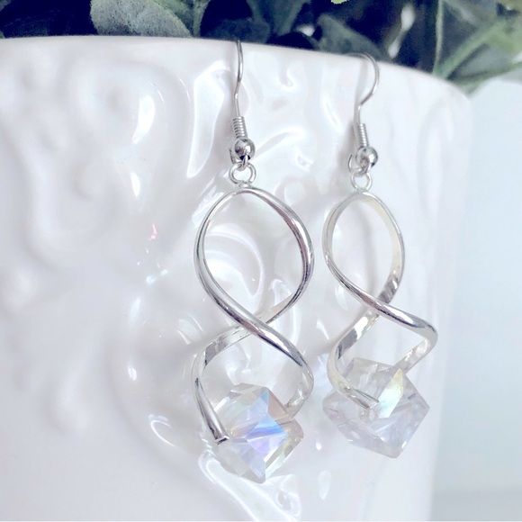 New Dangling Drop Glass Crystal Spiral Helix Twirling Twist Tangled Earrings