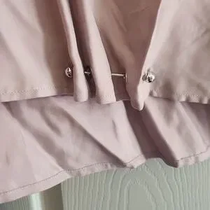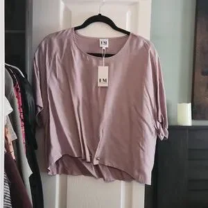 Create a glamorous appeal with this versatile ruched tee with slight high low hem adorned with a metal bar, courtesy of Hilary MacMillan.