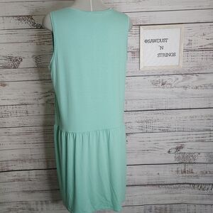 Made of supersoft jersey, this sleeveless frock is sweetly finished with a gathered drop waist that gives it understated girly flair. Very lightweight. New without tags.