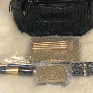 New Elizabeth Arden Cosmetic Travel Bag With Main Compartment & Zippered Outside Pocket With Make Up & Brushes. Set Includes;
