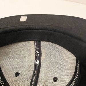 This hat is pre-owned and in used condition. There is some creasing, dents and wear to it from use. There is some dust and marks on it from storage. There is some minor loose threads. Please see all photos for exact item.