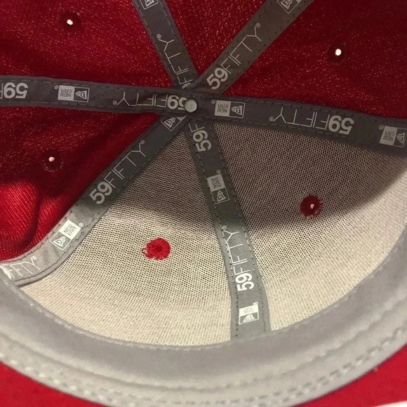 New!! Base red with embroidered dark navy maple 🍁 leaf on front. Pro-fit. Small Jays logo on back. No longer manufactured, hard to find.
