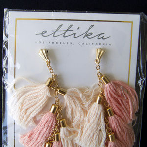 Ettika Los Angeles California 18Kt Gold Plated Daydreamer Tassel Earrings - Peach and Cream tassels.