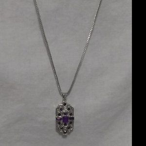 Silver setting with faux purple gems 17" silver chain