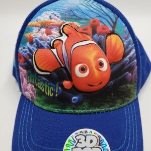 Vibrant blue cap featuring 3D Finding Nemo design. Perfect for fans of the movie. Snap back adjustable