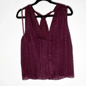 New Frame Draped Textured Silk Halter Top in Cabernet Purple size XL