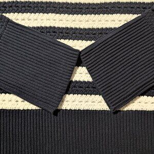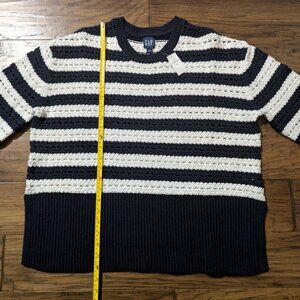 New Gap 24/7 Split Hem Crochet sweater navy striped size small