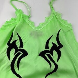 New Girl Order green cami top with lace trim and tattoo print in neon Medium