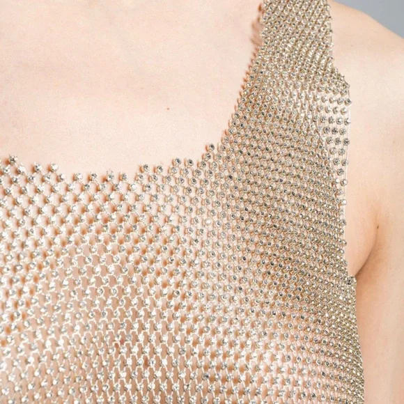 New Gold Mesh Rhinestone Top