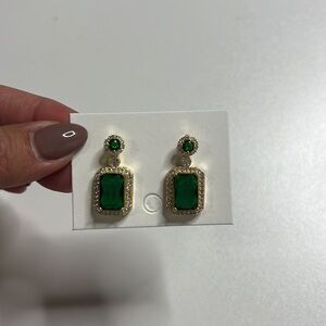 Brand new , cubic zirconia and imitation emerald drop earrings, silver and green stone gold base, also selling the pendant, listed separately