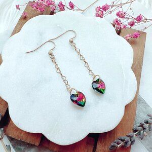 New Gorgeous Long Crystal Heart Chain Earrings | Handmade in BC