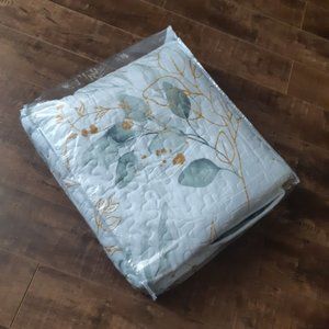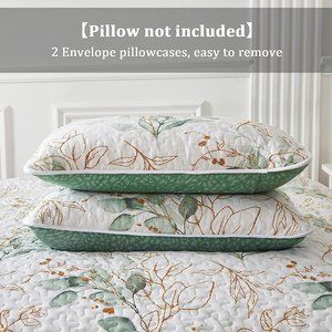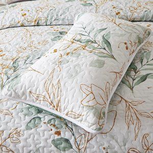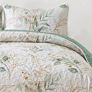 New Green & Gold Leaves 3-Piece Bedding 100% Polyester Quilt Set • Reversible • KING