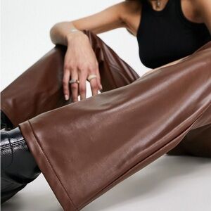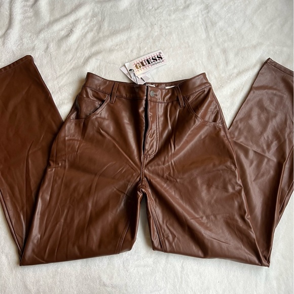 New Guess Brown Carpenter Straight-Leg Leather Pants