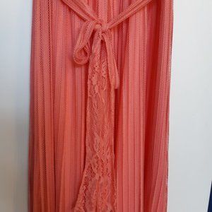 Beautiful lacey coral pink (called flash pink) coloured dress. This dress is the Guess Los Angeles Jupiter maxi dress in a size small.