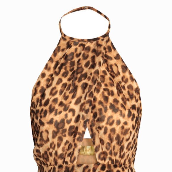 New H&M Leopard Print Long Halter Neck Maxi Dress XS