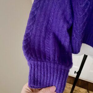 New HM Women Lady Purple Cable-knit Turtleneck Long Sleeves Sweater