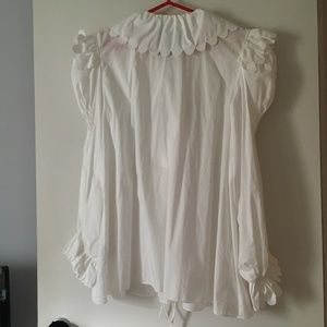 New HORROR VACUI White Cotton Puff Sleeve Pin Tuck Smocked Blouse L