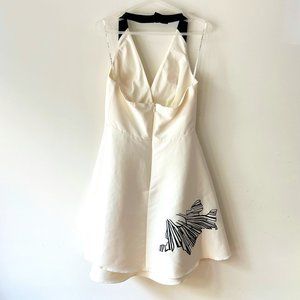 New Halston Heritage layered Skirt Cream Black Cocktail mini Dress, Size 4