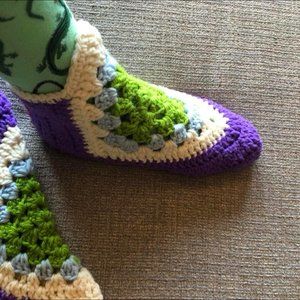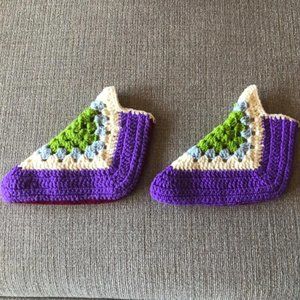 New, Hand Made. Multi Colour Crocheted Granny Square Slippers. S-M